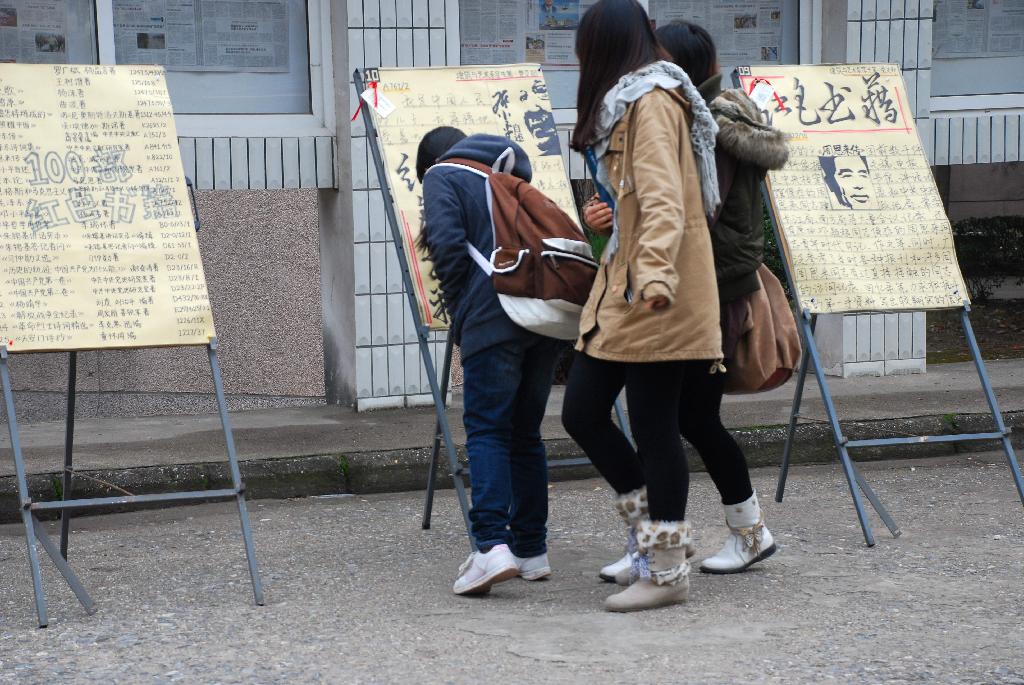 活动初期,支部成员深入公司图书馆调研红色书籍,通过为期一个月的查阅,成员自己又得到了一次红色精神的洗礼。随后支部召开座谈会,学习了十八大精神,交流了此次阅读的心得体会,同时也为全院师生推荐出一百本红色书籍,并逐一注明书籍的索书号和馆藏地址,以便师生查找借阅;成员们还利用休息时间,把推荐出来的书籍用书法、艺术海报的形式先后在公司主干道两旁、图书馆大厅内展现给全院师生,反响很好,老师同学驻足观赏、记录索书号。