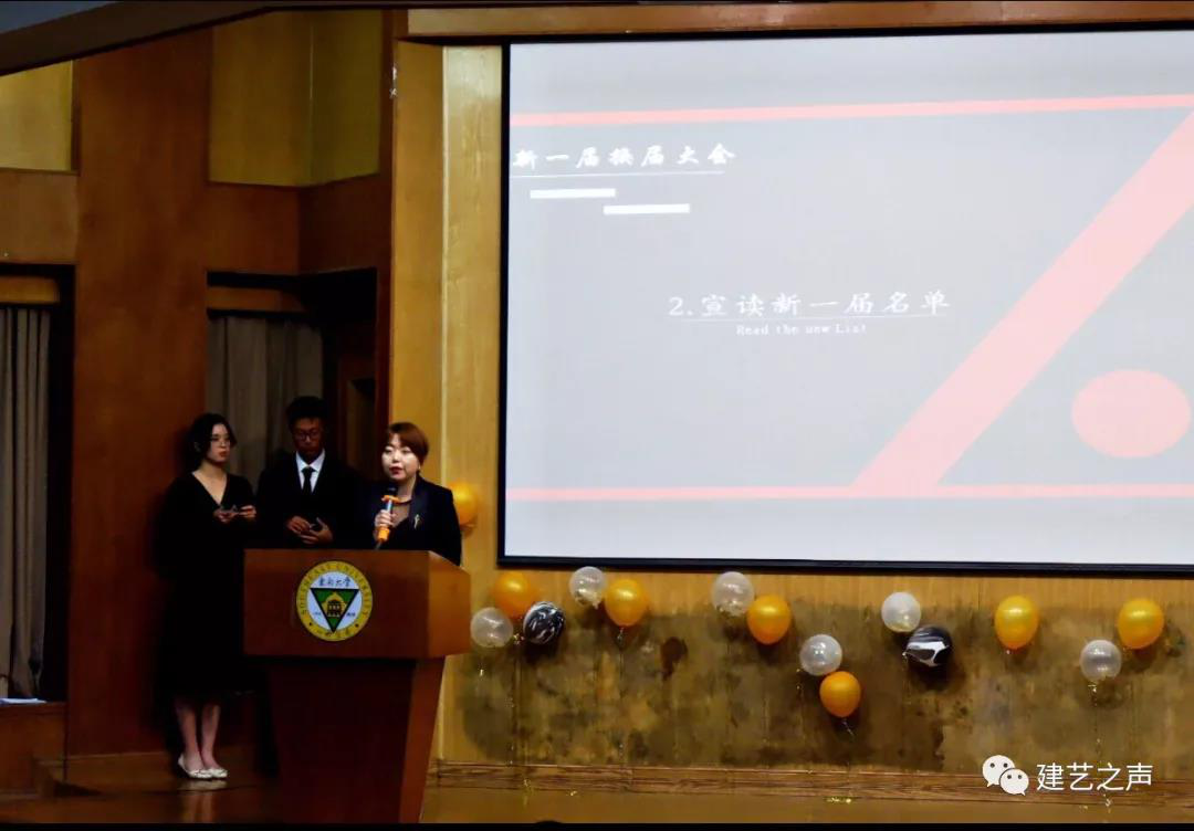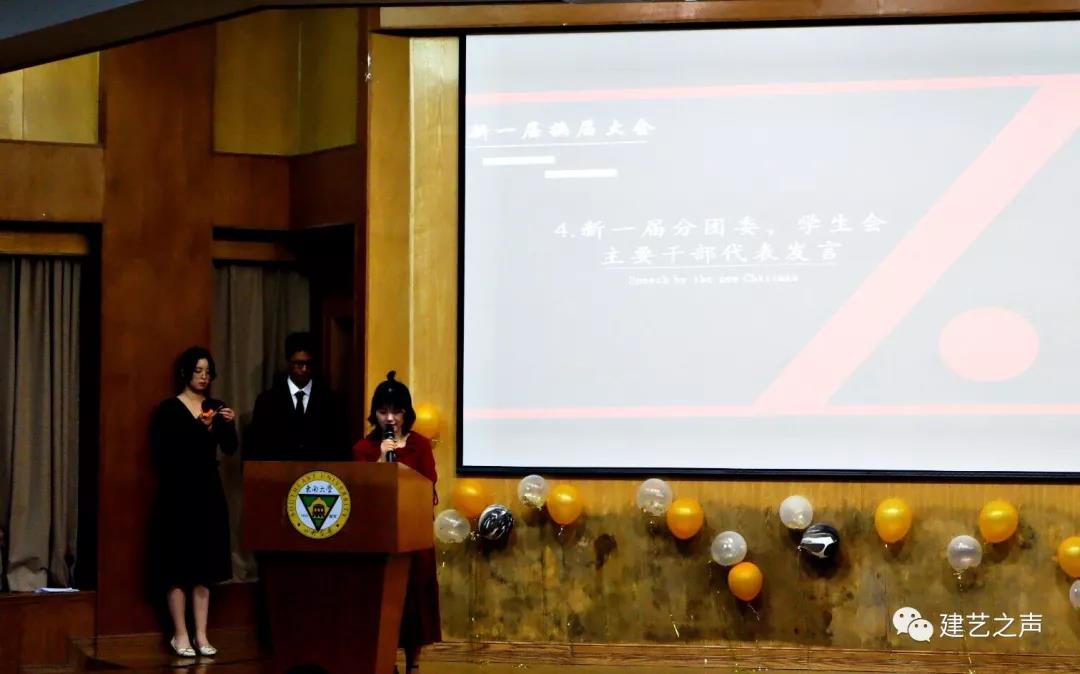 在江晶老师宣读完新一届分团委、员工会主要干部名单后,新老分团委副书记、主席进行了交接仪式,由新任分团委副书记姜梓芮代表新一届员工干部进行讲话。