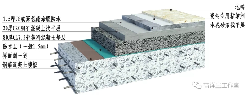 图 12-2-6 轻集料垫层地砖地面三维图(素水泥膏)