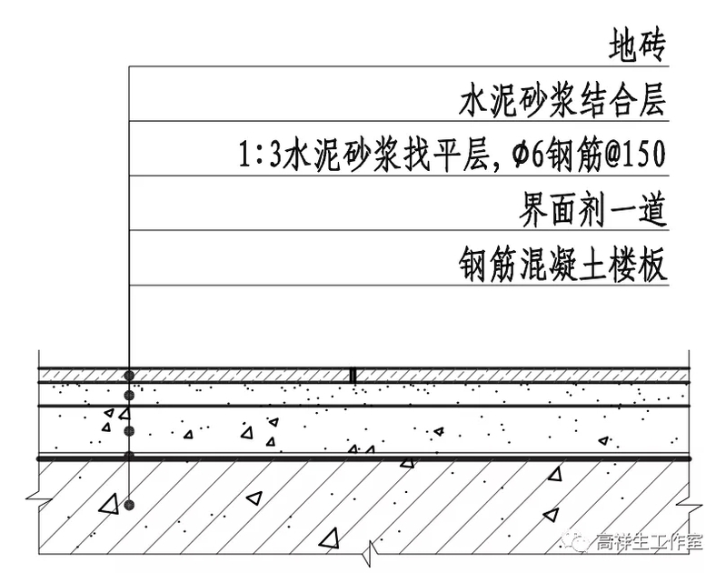 图 12-2-4 地砖地面构造节点图(基层厚)