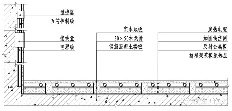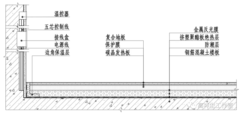 图 12-9-21 复合地板碳晶电暖地面构造节点图