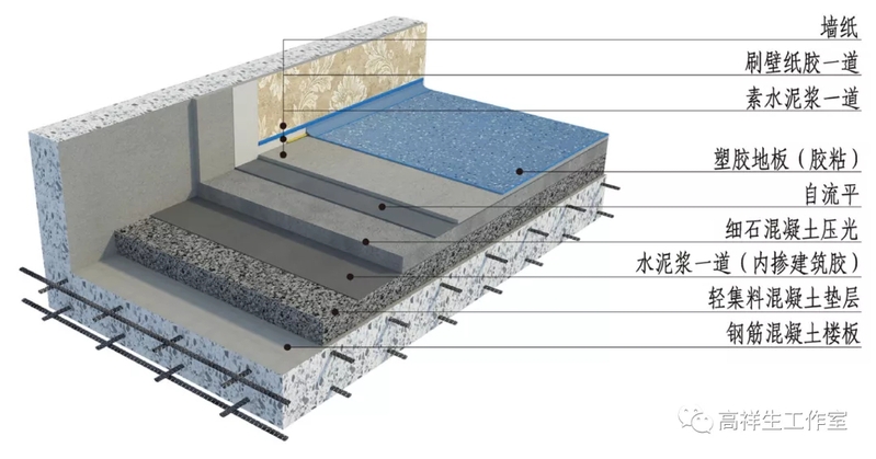 图 12-9-7 复合地板水暖地面构造节点图(发泡水泥绝热层)