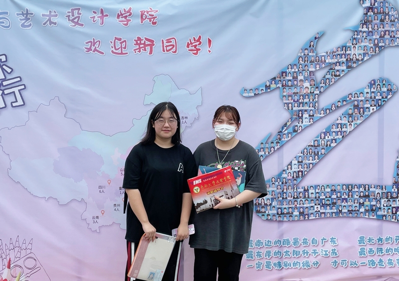 为了让挥别家人的新生感受到“艺”家人的爱意和温暖,我们为每一位新生精心设计了印有公司标识的口罩和文件袋,为每一间新生宿舍大门贴上了玫瑰花,还请每一位新生在迎新照片墙拍照留念。新生辅导员江晶老师走访了新生宿舍,了解新生对新环境的适应情况。