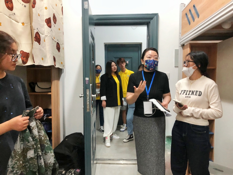 为了让挥别家人的新生感受到“艺”家人的爱意和温暖,我们为每一位新生精心设计了印有公司标识的口罩和文件袋,为每一间新生宿舍大门贴上了玫瑰花,还请每一位新生在迎新照片墙拍照留念。新生辅导员江晶老师走访了新生宿舍,了解新生对新环境的适应情况。