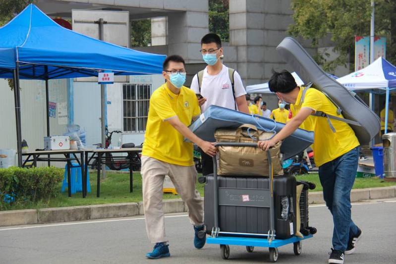 公司迎新工作人员及志愿者,在按要求做好疫情常态化防控工作的同时,为新生提供温馨体贴的服务。身穿黄色工作服的他们,来回奔走于报到点与宿舍楼之间,如同金秋十月里一缕缕送爽的秋风,传递公司温情,尽显人文关怀。