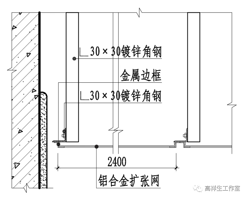 图 13-3-32 明龙骨金属网顶棚构造节点图(二)