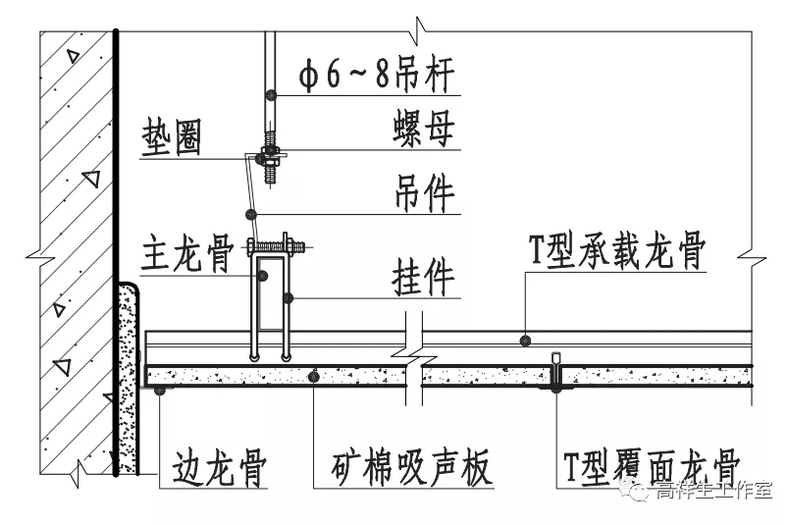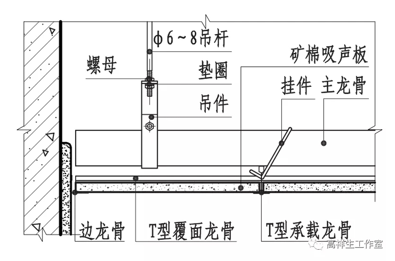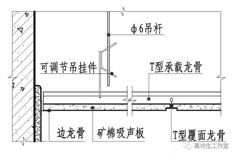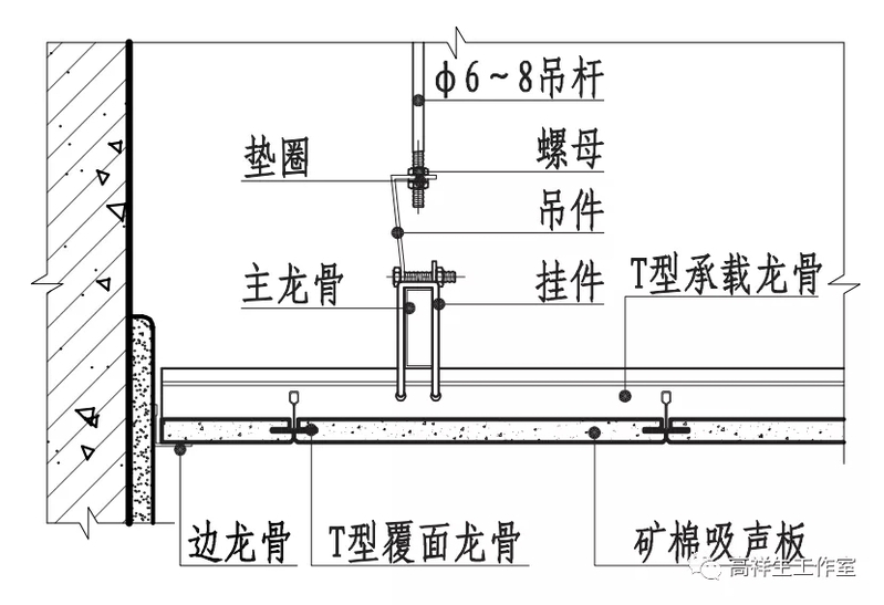 图 13-2-3 T 型单层骨架顶棚构造节点图(一)