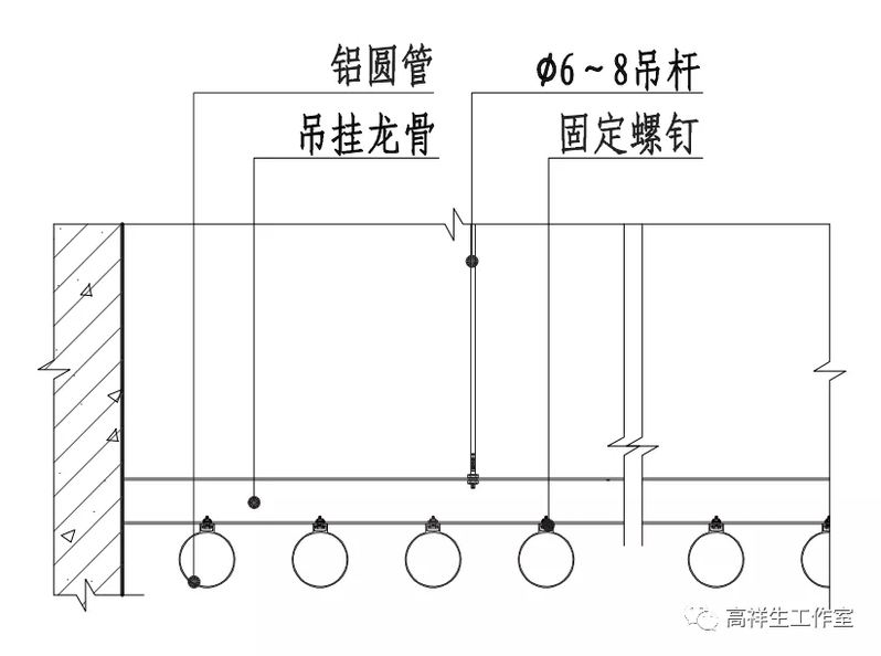 图 13-3-8 条形铝扣板顶棚(一)构造节点图