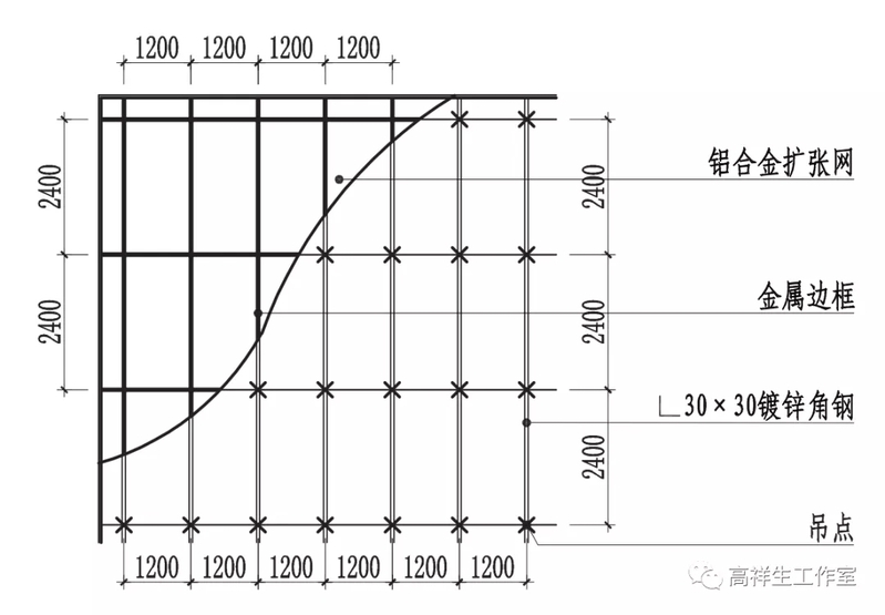 图 13-3-26 暗龙骨金属网顶棚平面图