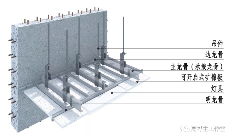 图 13-2-14 明架式矿棉板顶棚三维图方向二