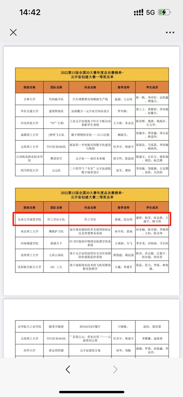 2022年12月9日,第十五届全国三维数字化传新设计大赛全国总决赛落下帷幕。在本次全国总决赛中,乐天使师生再创佳绩,刘刚、段安琪老师指导团队获得了数字文化设计大赛一等奖,郭城、段安琪老师指导团队获得了元宇宙创建大赛二等奖。