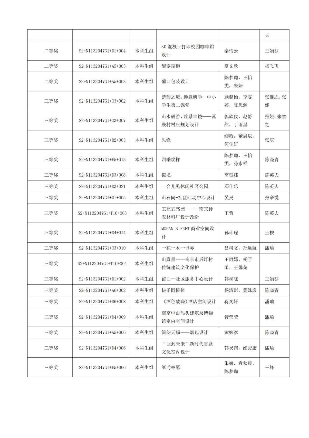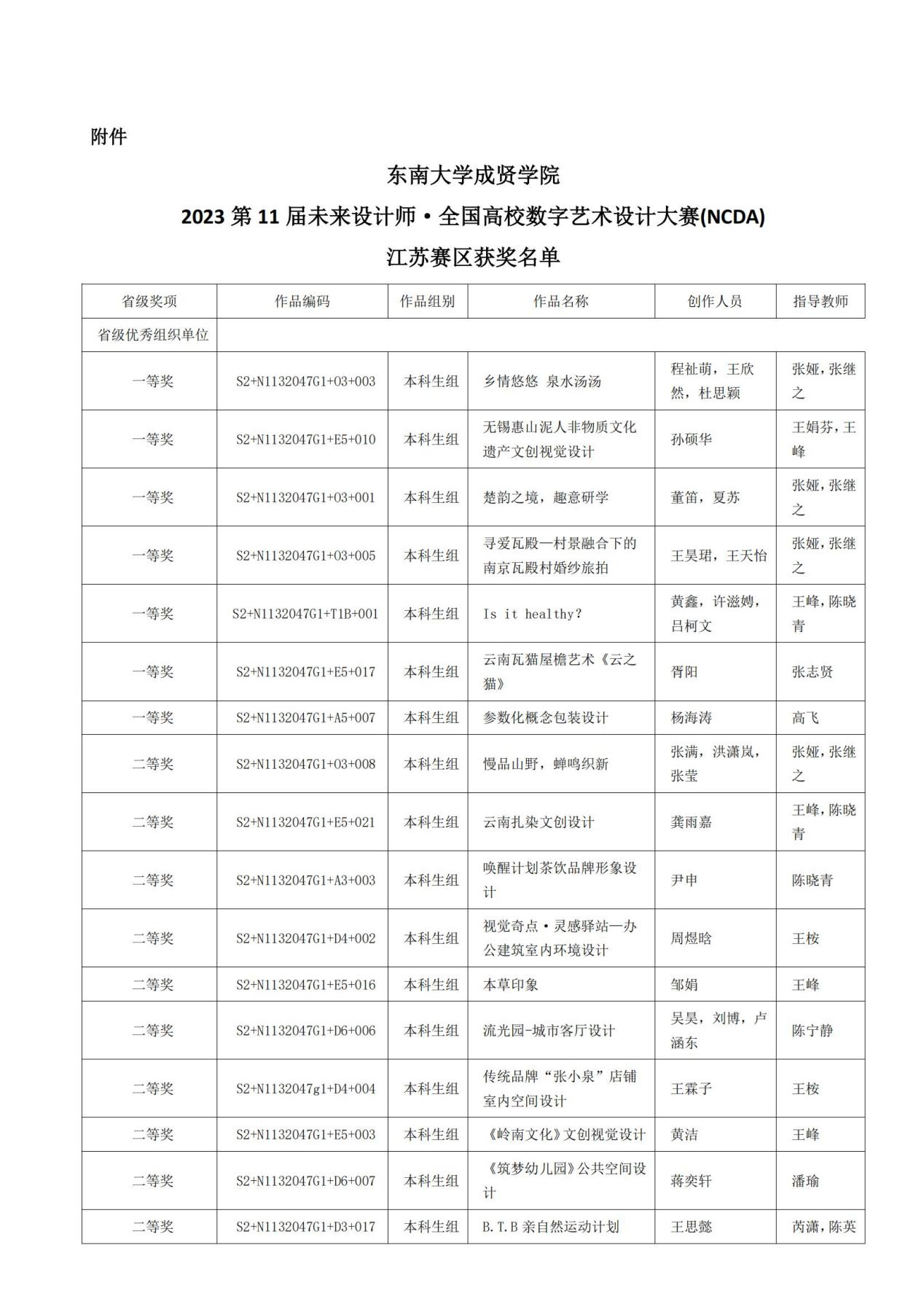 省级奖项获奖名单