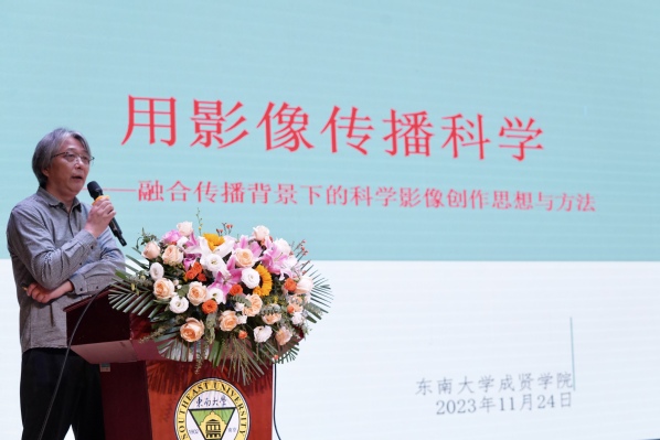 乐天使常务副经理杨冬辉主持2023年首届成贤艺术节“艺术与设计”论坛,五位讲座嘉宾先后作论坛主题发言。南京工业大学教授胡振宇以“现代体育建筑的形态表达”为题,从背景简介、主要概念、基本原理、案例分析和结语展望等方面阐释了现代体育建筑的探索之路。江苏省科教电影电视协会副理事长兼秘书长张学超作了题为“媒介融合背景下的科学影像创作思想与方法”的发言,介绍了科学与科普、媒体环境与科学传播、科学影像的特性与“科影融合”、科普短视频的创作思路与方法、科普作品大赛与优秀作品特点。南京艺术公司教授薛峰的发言题目是“艺科融合背景下的产教融合实践”,结合南京艺术公司数字化助推艺术与科技的探索,汇报了项目背景、优势条件、研发方向、组织框架、建设目标、重点类目等内容。南京艺术公司副教授季鹏以“设计中的艺术与艺术中的设计”为题,结合大量优秀的设计作品,剖析在设计中巧妙运用艺术的方法,分享了个人在学习、设计和教学工作中的心得体会。东南大学教授单踊作了题为“方寸之间——LOGO设计赏析”的发言,通过原理简介、典型解读等方面内容,从建筑师视角提出了LOGO应具备的设计理念和文化内涵。
