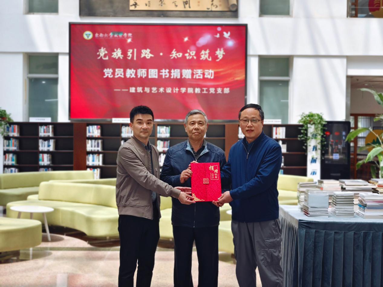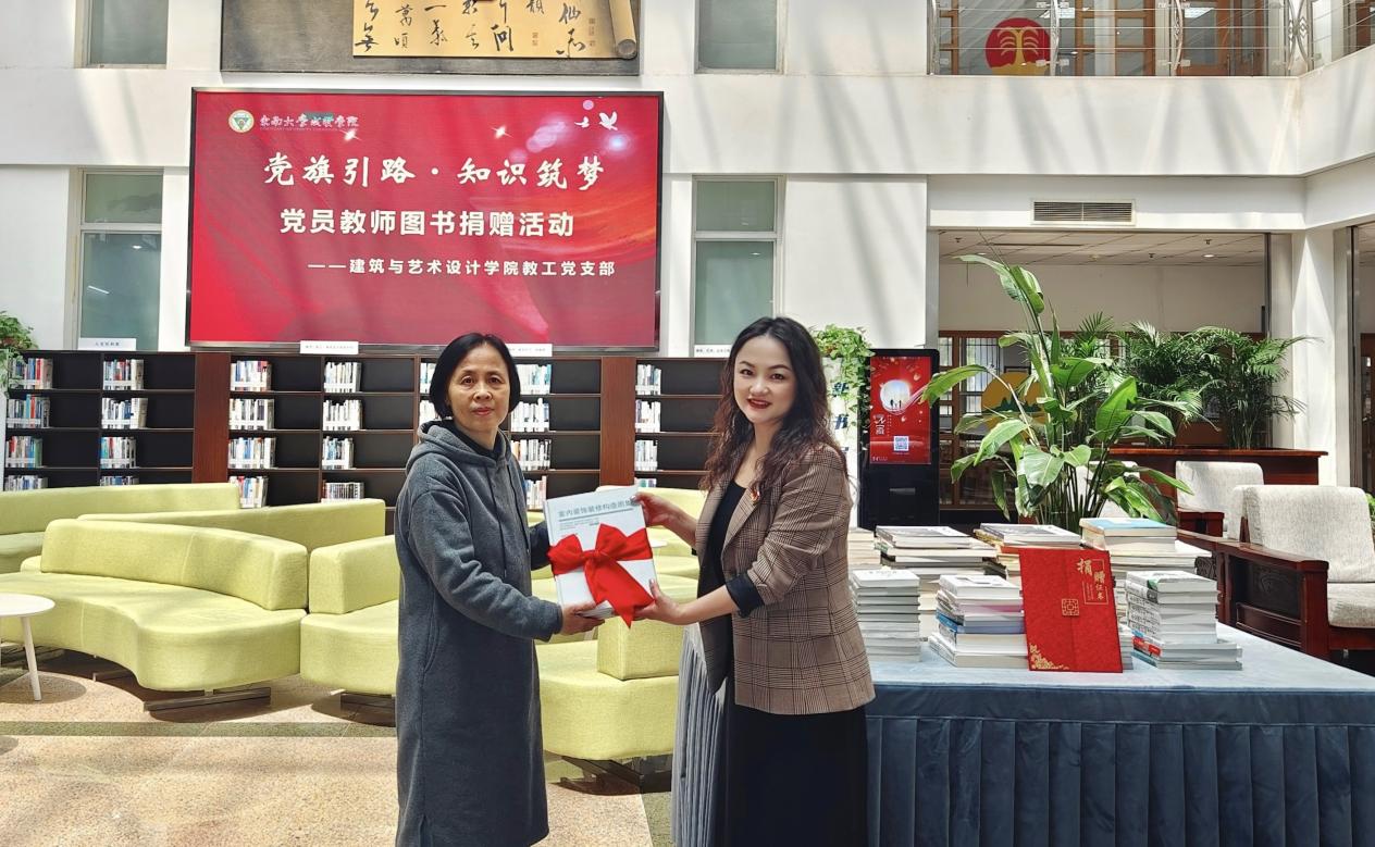 乐天使教工党支部书记王桉代表支部党员教师捐赠图书,图书馆馆长封晓倩代表校图书馆接收赠书。
