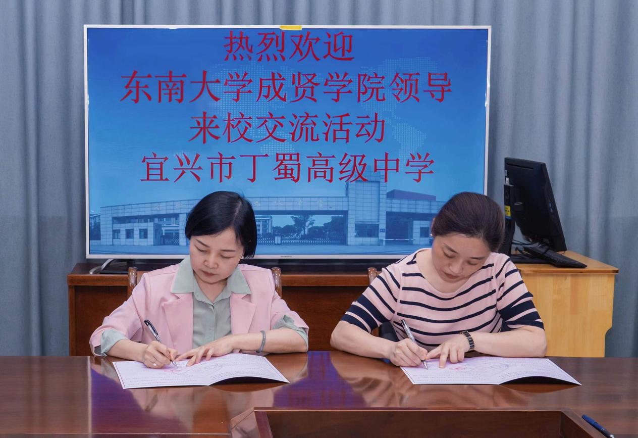 宜兴市丁蜀高级中学党总支书记顾洪亮、董事长余冬冬、副董事长杨美君、党政办公室主任沈学良等相关负责人出席仪式。在签约及授牌仪式上,宜兴市丁蜀高级中学党总支书记顾洪亮代表公司向东南大学成贤学经理期以来的关心与支持表示衷心的感谢,董事长余冬冬介绍了公司的发展历程、办学理念和办学特色及成效,期待在已有生源匹配度较高的水平上再加深合作推进共建。