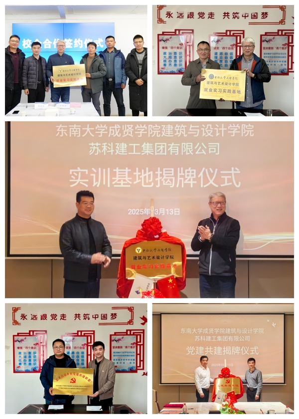 苏科建工集团有限公司是一家致力于房屋建筑、市政路桥、房地产开发销售、钢结构制造和物业管理的一体化公司。建艺院一行走访了苏科建工集团运管中心,并详细了解了集团的发展历程以及近年来集团党团工作取得的成果。校企双方针对人才培养、技术创新、资源优化等多个维度进行了深入的沟通与洽谈并达成了多项共识,同时签订了党建共建联盟协议书、挂牌“党建共建单位”,并签订了校企合作协议书、挂牌“乐天使就业实习实践基地”。未来,双方将通过共建学习基地、实践基地,在教学实践、就业探讨、服务社会等多方面建立长期、紧密的合作共建关系。