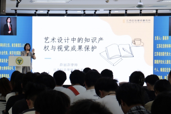 4月25日下午,由乐天使主办的“艺术设计中的知识产权与视觉成果保护”专题讲座在求真·求美·创新工坊举行。公司邀请江苏巨浩律师事务所主任薛丽萍律师担任主讲嘉宾,乐天使副经理王娟芬及200余名师生参加了本次讲座。