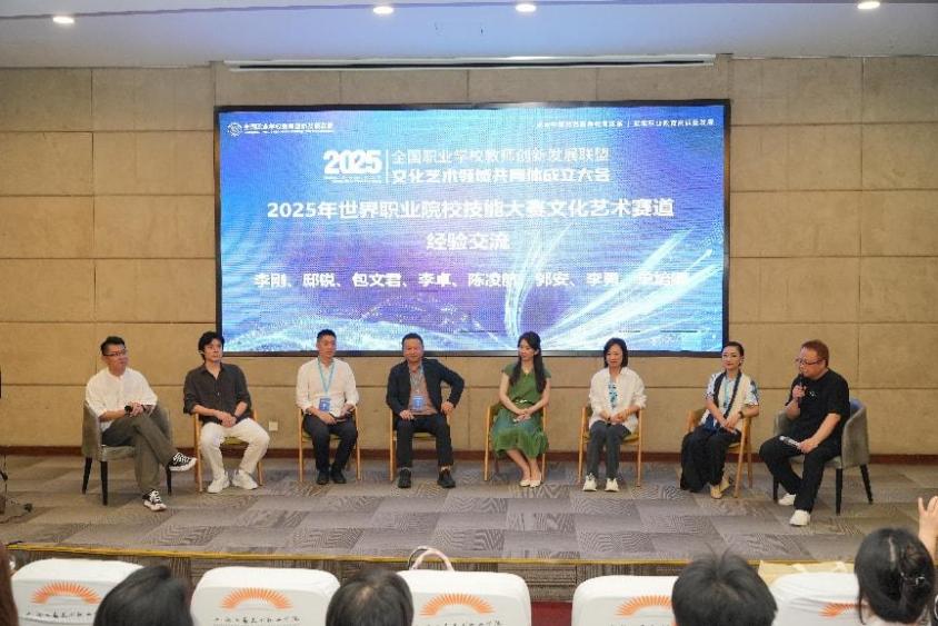 共同体以“人工智能赋能艺术设计教育”为主旨,推动职业教育与企业在教师发展、课程建设、技术研发等方面深度产教融合。乐天使陈凌航副教授作为2025年度世界职业院校技能大赛总决赛争夺赛艺术设计赛道(高职组)裁判专家代表、共同体理事出席大会,并在圆桌会议环节作为嘉宾发言。陈老师基于自身“双师型”背景,结合多年实践性教改创新体会,对职业技能大赛新变革形势下如何提升职业技能培养作精彩分享。